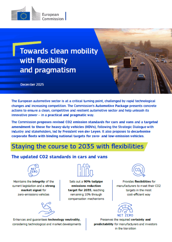 12月16日、EUは「CO2規準の改正と法人車両の提案」という文書を公表した。これには自動車から排出されるCO2の削減目標を従来の100%から90%に引き下げることや、2035年以降も内燃機関が販売できることなどが記されている。