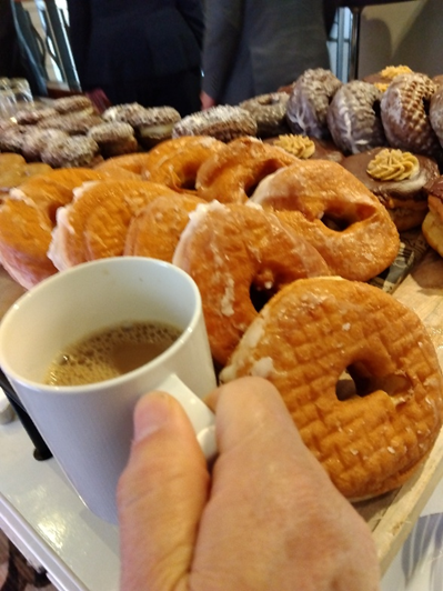 カンファレンスは19日午後から始まり、 21日まで。この写真は20日の午前10時のコーヒーブレークに出されたドーナツ。