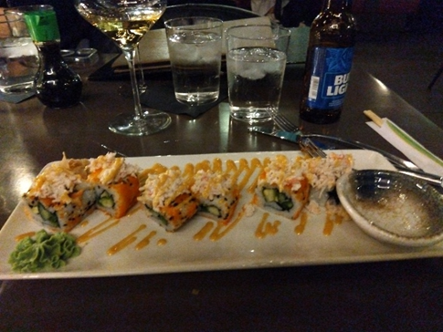 24日の昼食のカリフォルニアロール。初めて食べたがおいしかった。中にノリが巻いてあり、ノリの香りがなかなかいい。これは全部いただきました。左下にワサビのようなものが添えられていたが、これは多分、合成ワサビ。これはいただけない。