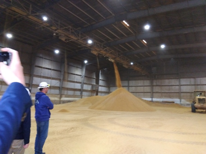 トウモロコシ農場で収穫されて、倉庫に積み上げられたトウモロコシ。一粒いただいて食べたが、かなり硬い。バイオエタノールの原料とするほかは、豚や鶏の餌にするものだ。食べられないことはないが、いつも食べ慣れているスイートコーンとは違う。