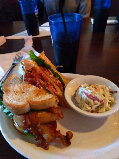 25日の昼食。定番のBLTサンドイッチ。パンはカリカリに焼けていて、ベーコンもこれもカリカリでおいしい。ただ、ほとんどべーコンでレタスとトマトはどこっ?て感じ。これも半分しか食べられなかった。すみません。