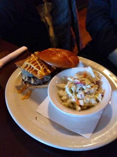 これはほかのメンバーが頼んだハンバーガーだが、パテは先ほど見学したDDGSを焼いたもの。つまりDDGSハンバーガーだ。